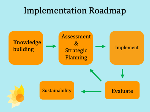 To effectively implement and evaluate trauma-informed care, a minimum of 18-months is recommended. This allows time to evaluate baseline organizational functioning and implement required trainings, adapt policies and procedures, and measure changes in staff attitudes, knowledge, and skills. It also allows enough time to measure any initial changes in organizational culture. For maximum effectiveness, 3-years is generally needed to see deeper system level changes and client level impacts.